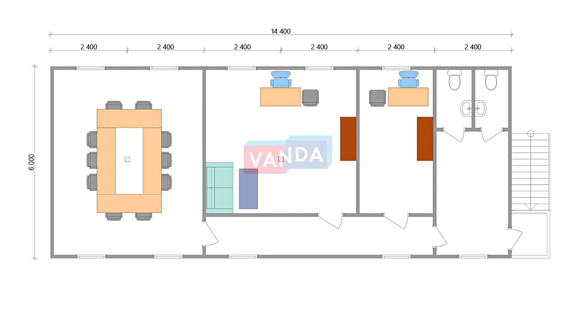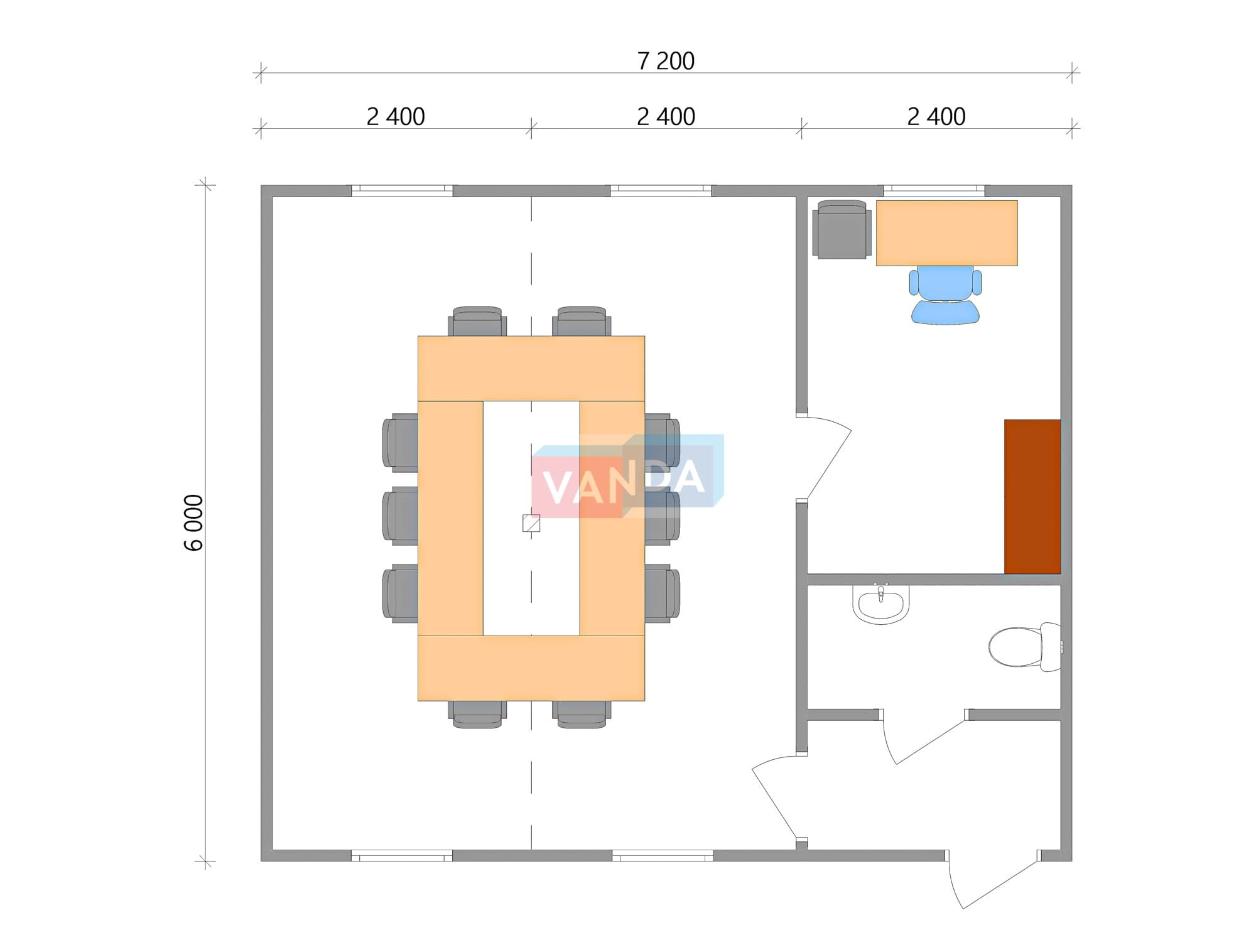 Модульная бытовка с плоской крышей 7.2x6.0 7.2x6.0 43.2 OSB 9 мм. Оцинкованный профлист 650 000 р. Уточняйте у менеджера