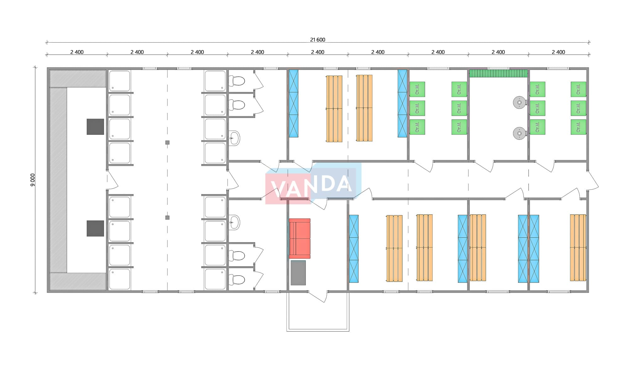 Проект вахтового посёлка 14.0х57,6 14x57.6 806.4 OSB 9 мм. Оцинкованный профлист 20 700 000 р. Уточняйте у менеджера